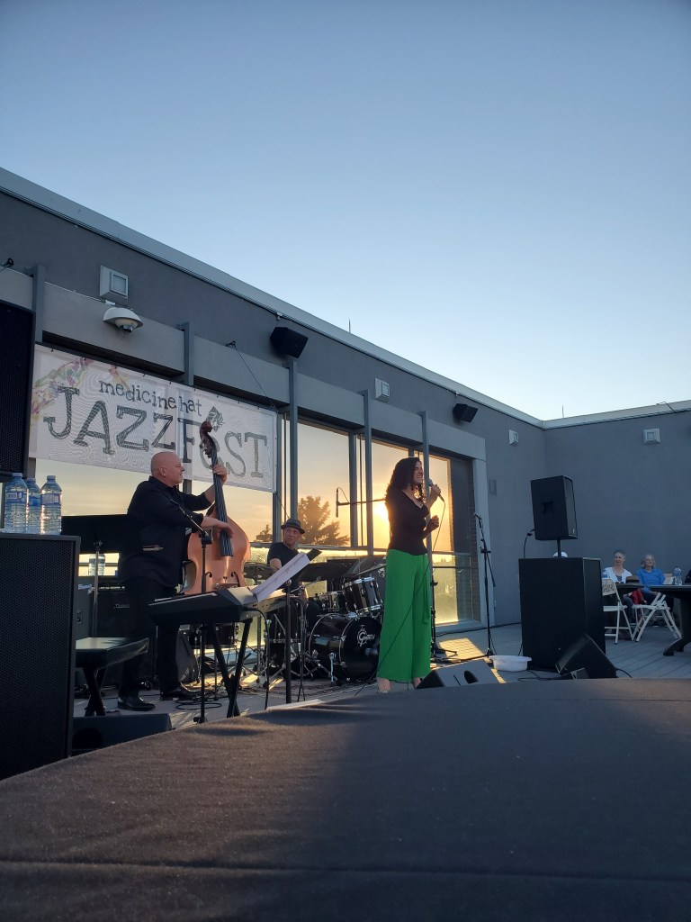 I hadn’t realized when I booked my ticket to Laila Biali, at the Medicine Hat Esplanade, that the concert was going to be on the rooftop terrace. It was a beautiful setting and I had a great time visiting the two couples that joined my table. I didn’t mention this to the gentleman, but he reminded me exactly of my late grandfather and I couldn’t help but smile at his outfit, as it was exactly what my grandpa would have worn. Watching his wife get so excited about the performance made me think that they must have made some great Jazz memories throughout their lives. I hope I am still out enjoying life at their age!