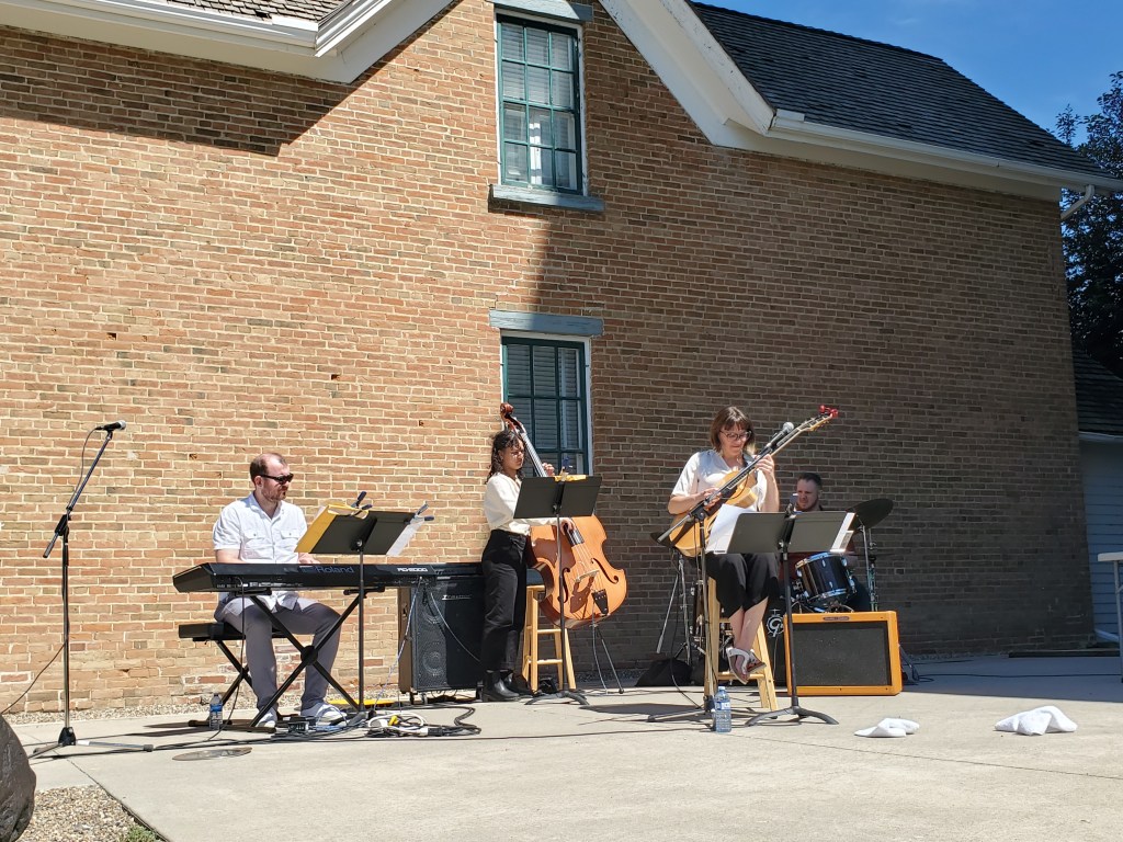 The band, Dr. Bill and the Stray Horns, played all sorts of wind instruments while I sat and got a huge kick out of a teenage boy beating his Dad (I assume) at a game of Chess. How in the heck do you learn that game?? I have never actually watched a round of chess before and that giant board was the perfect place to do it. The dad put in a good effort, but that boy sure had skills!
