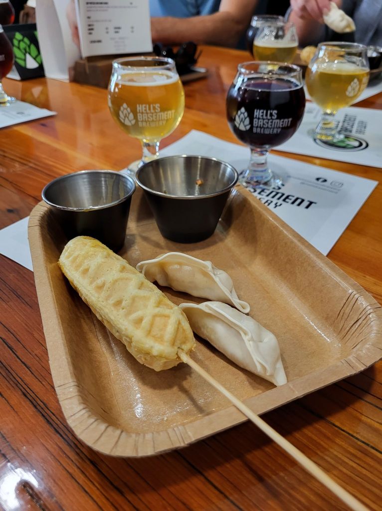 Hell’s Basement was our 3rd stop. As I have recently been telling people, craft beer is turning me into a beer drinker. I had visited this brewery before, but it was nice to have a table full of people to visit with this time. We even got to tour where the magic happens. I wonder if they are hiring taste testers for the days they experiment with new brew recipes?
